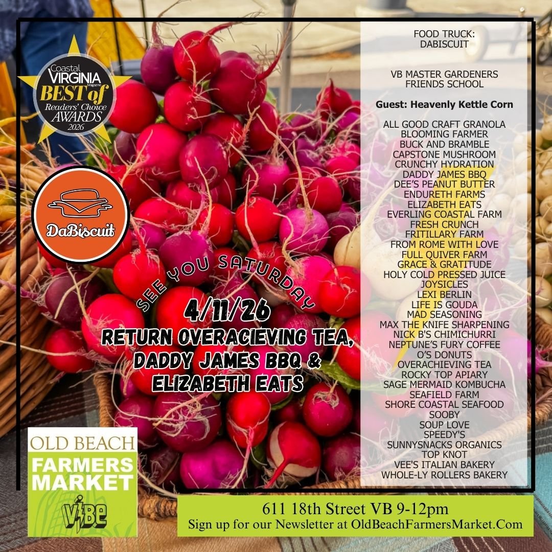 But our market is more than just a culinary haven—it's a celebration of sustainability and community. Established in 2008, the Old Beach Farmers Market is fueled by the dedication of our volunteers, operating as an independent 501(c)6 organization. We are staunch supporters of local family farms, watermen, and Virginia wineries, fostering a thriving ecosystem of local commerce.